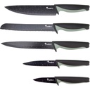 Set nožev priznane blagovne znamke Cheffino, linija Livenza vsebuje visokokakovostne nože iz nerjavečega jekla. Noži so opremljeni s posebnim premazom, ki preprečuje prijemanje hrane na rezilo, kar omogoča hitro in enostavno rezanje. Ergonomični ročaji so mehki na otip, kar zagotavlja udoben in varen oprijem pri vsakem rezanju. Set vsebuje: kuharski nož (20 cm), nož za kruh (20 cm), nož za rezanje (20 cm), univerzalni nož (12,5 cm), nož za lupljenje (7,5 cm), kuhinjske škarje in lupilec. Nože lahko pomivate v pomivalnem stroju, vendar je za ohranitev njihove kakovosti priporočljivo ročno pranje.