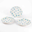 Komplet treh krožnikov premera 18 centimetrov, izdelanih iz visokokakovostne keramike. Vzorec pik prinaša eleganco, krožniki pa so trajnostni. Primerni so za pomivanje v pomivalnem stroju in mikrovalovno pečico.